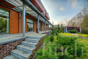 Цоколь: гараж, котельная, постирочная, подсобное помещение, санузел. 1 этаж: гостиная, кухня-столовая, гостевой санузел. 2 этаж: 2 спальни с ванными комнатами, зал с балконом. 3 этаж: большая спальня с ванной комнатой и балконом.