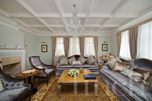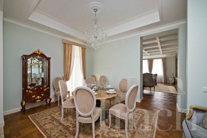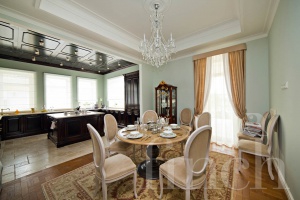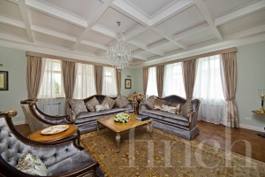 Первый этаж: холл, гостевой санузел, кухня, столовая с выходом на террасу, кабинет, гостиная с камином, технические помещения, гараж на 2 а/м. Второй этаж: холл, хозяйская спальня с ванной и гардеробной, 2 спальни с санузлами и гардеробными. Отдельный дом для проживания прислуги, дополнительное помещение для хранения сезонных вещей и комната для стирки белья. Описание дома. Материал кирпич, деревянные стеклопакеты, натуральная черепица, отделка фасада штукатуркой, камнем, мозаикой. Инженерные системы дома. 1. Отопление и теплые полы: газовый котел BUDERUS, разводка отопления, теплых полов и горячего водоснабжения выполнена трубами Rehau Rautitan. 2. Кондиционирование: центральная система кондиционирования General Fujitsu. Участок. На участке выполнены ландшафтные работы с укладкой газона, подпорными стенками и дорожками из брусчатки. На участке высажены сосновые и лиственные деревья, выполнено освещение участка.
