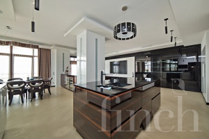 Удачное планировочное решение включает в себя: большое уютное пространство кухни-столовой-гостиной из окон которой открывается панорамный вид на Белый дом, гостиницу Украина и парк, кухня оборудована всей необходимой техникой включая винный шкаф. Приватное пространство master-bedroom с 2мя ванными комнатами для супругов и вместительным гардеробом, детская комната с ванной, классический кабинет, гостевой с/у с постирочной, два балкона. Внутреннее пространство выдержано в современном стиле. За квартирой закреплено машино-место в подземном паркинге.